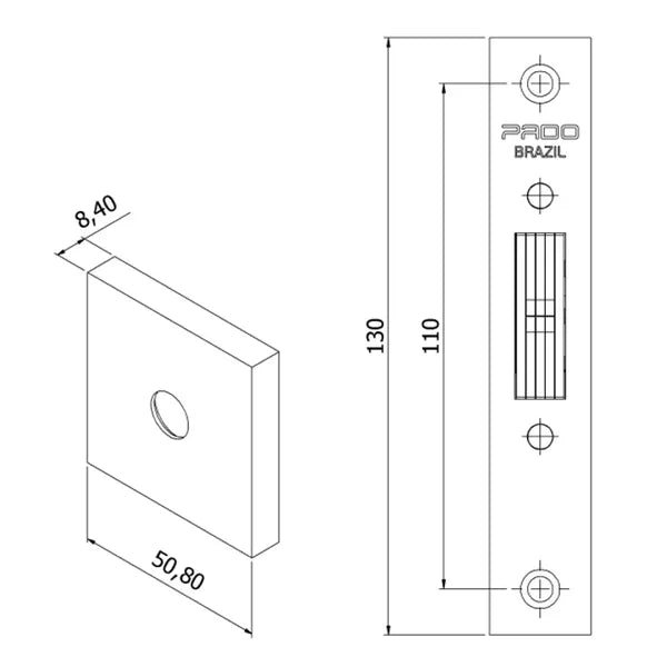 Fechadura Correr Externa Roseta Quadrada - Preto - Pado